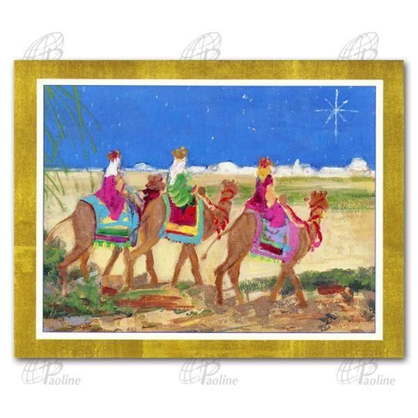 ラクダに乗った三博士が救い主の誕生を知らせる大きな星を見つけた場面が、油調で描かれております。