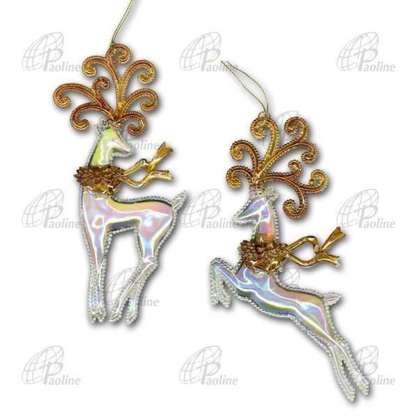 トナカイの胴体部分にはオーロラ加工がほどこされており、光が当たると美しくきらめきます。