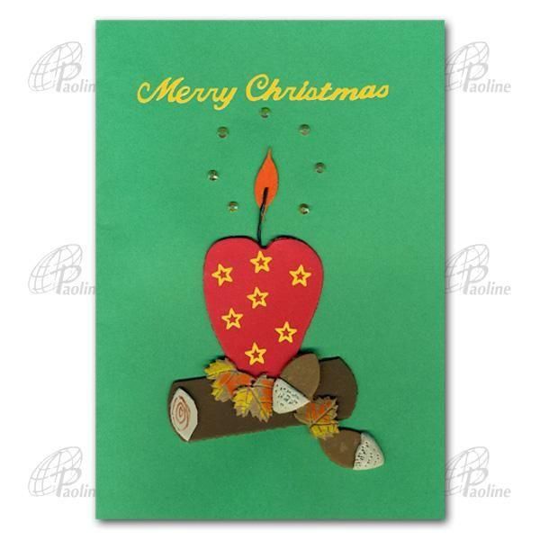 ローソクと木材、どんぐりと落ち葉は紙粘土でつくられており、きらきらのストーンで豊かに彩られております。