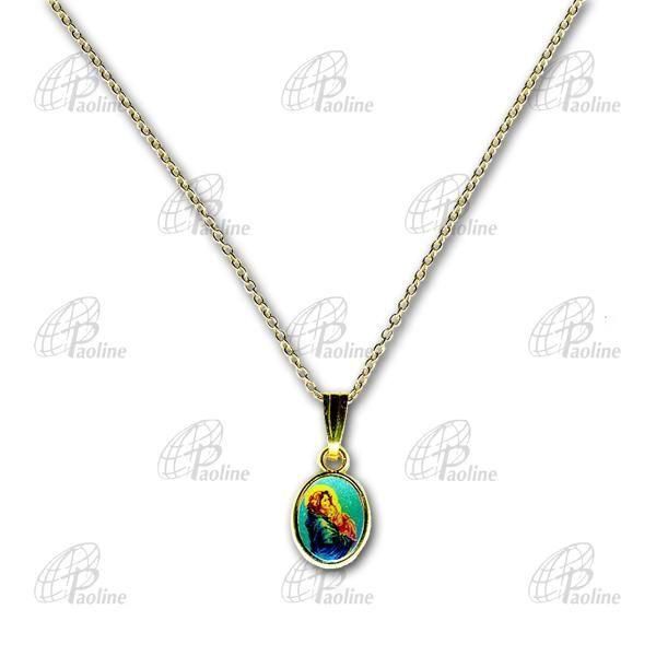 マドニーナが鮮やかに描かれた金色のメダイと、同色のクサリを組み合わせました。