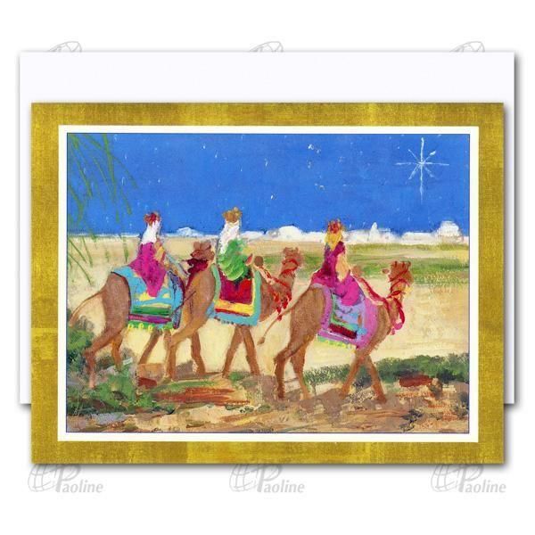 ラクダに乗った三博士が救い主の誕生を知らせる大きな星を見つけた場面が、油調で描かれております。